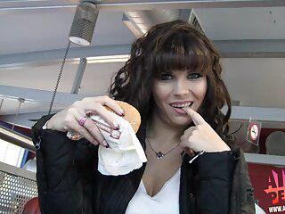 Im fast food Restaurant fingert sie sich, bläst unter dem Tisch und frisst den Sperma Burger – Aische Pervers